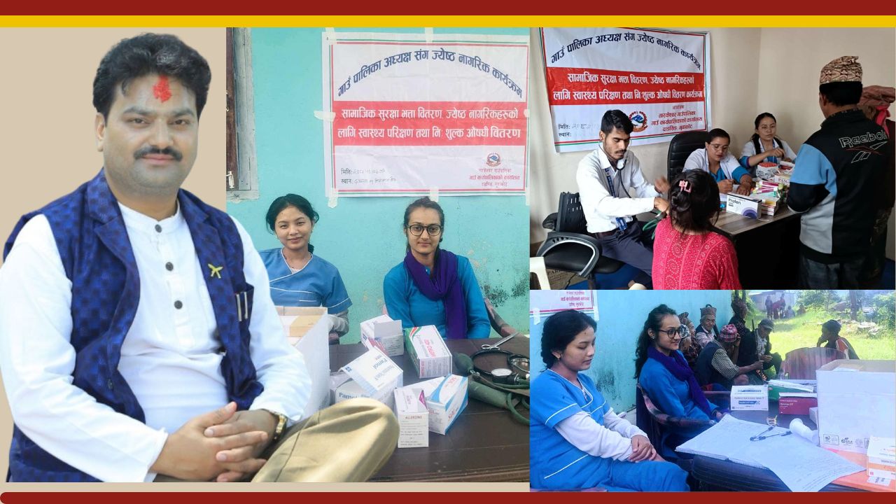 समयमा भत्ता वितरण नहुने र ज्येष्ठ नागरिकहरुले झन्झट बेहोर्नुपर्ने समस्याको अन्त्य गर्दै अध्यक्ष अधिकारीले आफू निर्वाचित भएलगत्तै प्रत्येक ३÷३ महिनामा वडा वडामा कार्यक्रम गरी आमाबुबाहरूको निःशुल्क स्वास्थ्य परीक्षण, औषधी वितरण र स्वास्थ्य परामर्शसँगै वृद्धभत्ता वितरण गर्ने अभ्यासस्वरूप ‘गाउँपालिका अध्यक्षसँग ज्येष्ठ नागरिक कार्यक्रम’ सुरु गर्नुभएको थियो ।