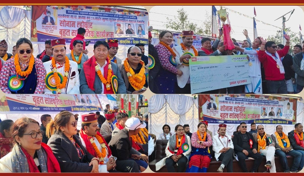 नुवाकोट । तामाङ समुदायको महान् चाड सोनाम ल्होछारको अवसरमा तारकेश्वर सांस्कृतिक तथा खेलकुद विकास मञ्चद्वारा आयोजित गाउँपालिका अध्यक्ष कप फुटबल प्रतियोगिता भव्य रूपमा सम्पन्न भएको छ।