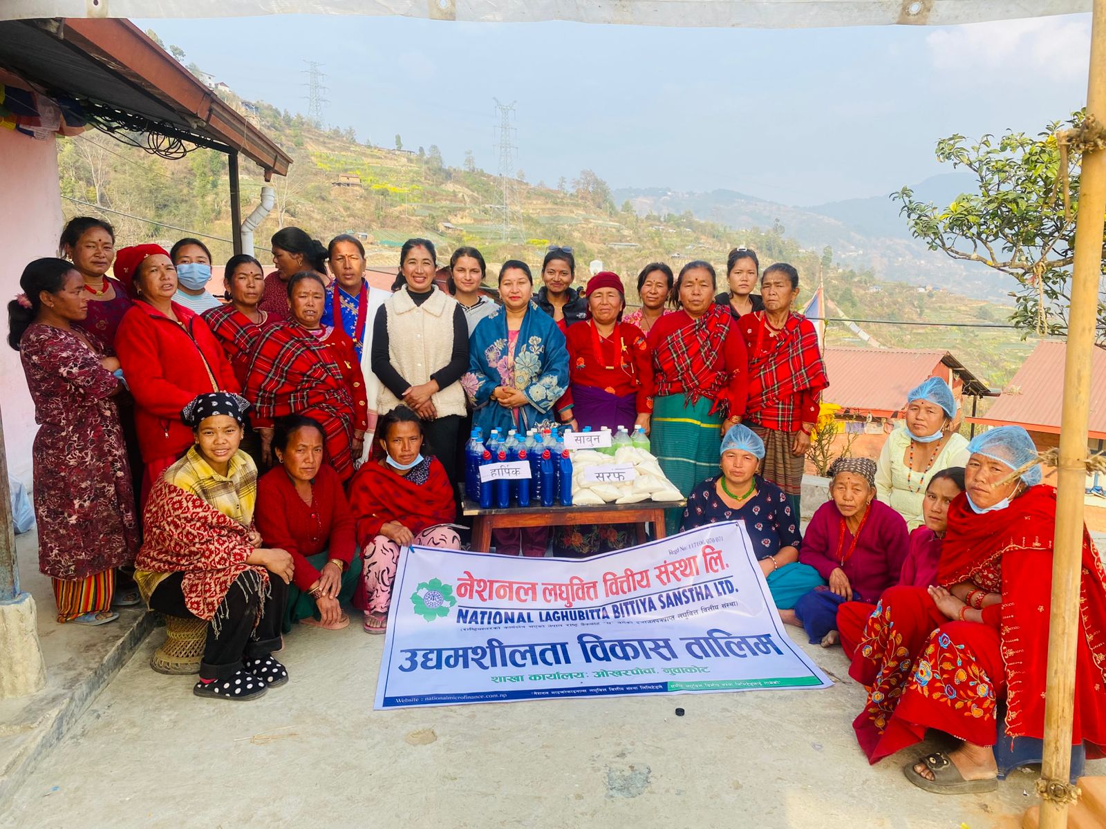 ककनी । नेशनल लघुवित्त वित्तीय सँस्था लि. शाखा कार्यालय ओखरपौवाको आयोजनामा सँस्थामा आबद्ध भएका सदस्यहरुलाई ‘उद्यमशीलता विकास तालिम’ दिइएको छ । सँस्थामा आबद्ध भएका सदस्यहरुलाई सरसफाईका सामाग्रिहरु साबुन, सरफ र हर्पिक बनाउने दुई दिने तालिम दिइएको शाखा प्रमुख सिर्जना केसीले जानकारी दिनुभयो ।